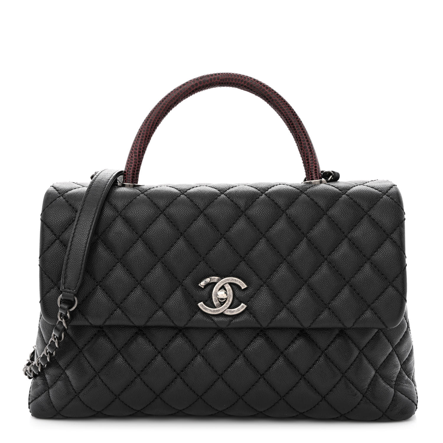 Chanel Medium Coco Handle Quilted Black Caviar Lizard Handle Gold Hardware