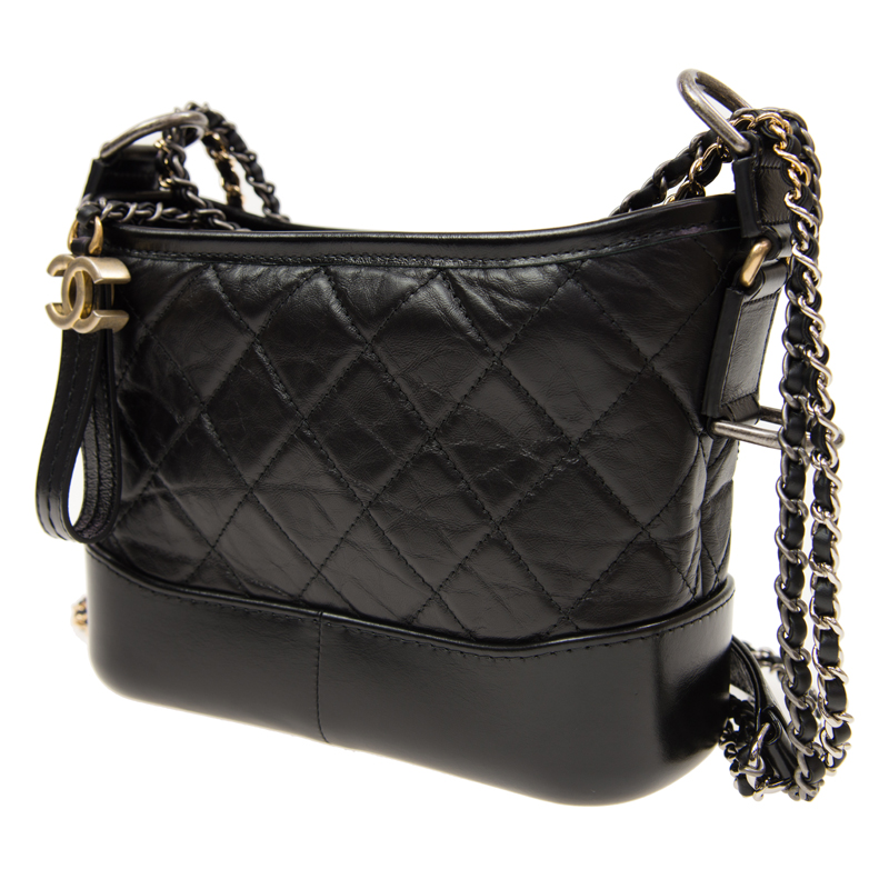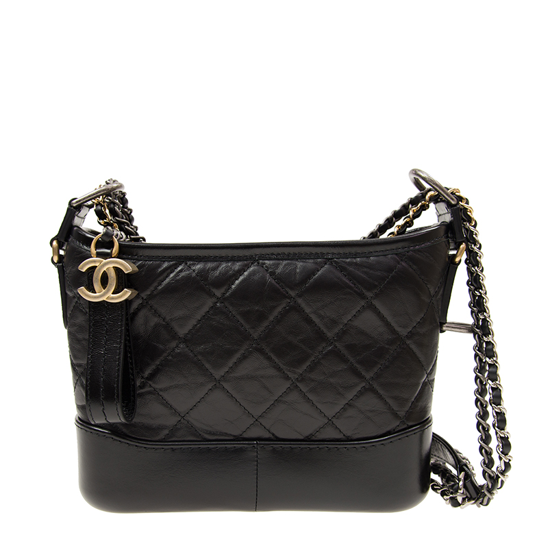 CHANEL Aged Calfskin Quilted Small Gabrielle Hobo Black