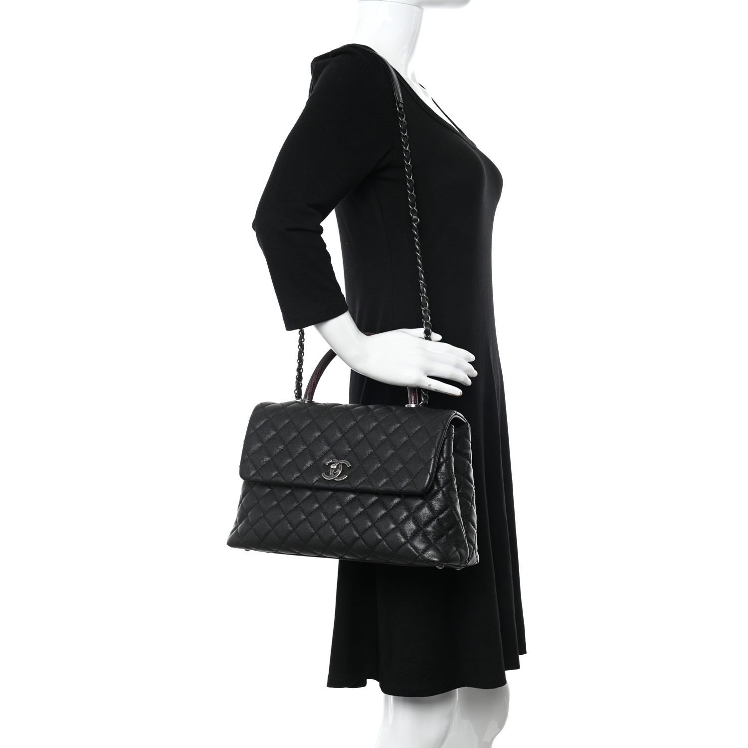 Chanel Small Coco Handle Flap Bag Black Caviar Light Gold Hardware